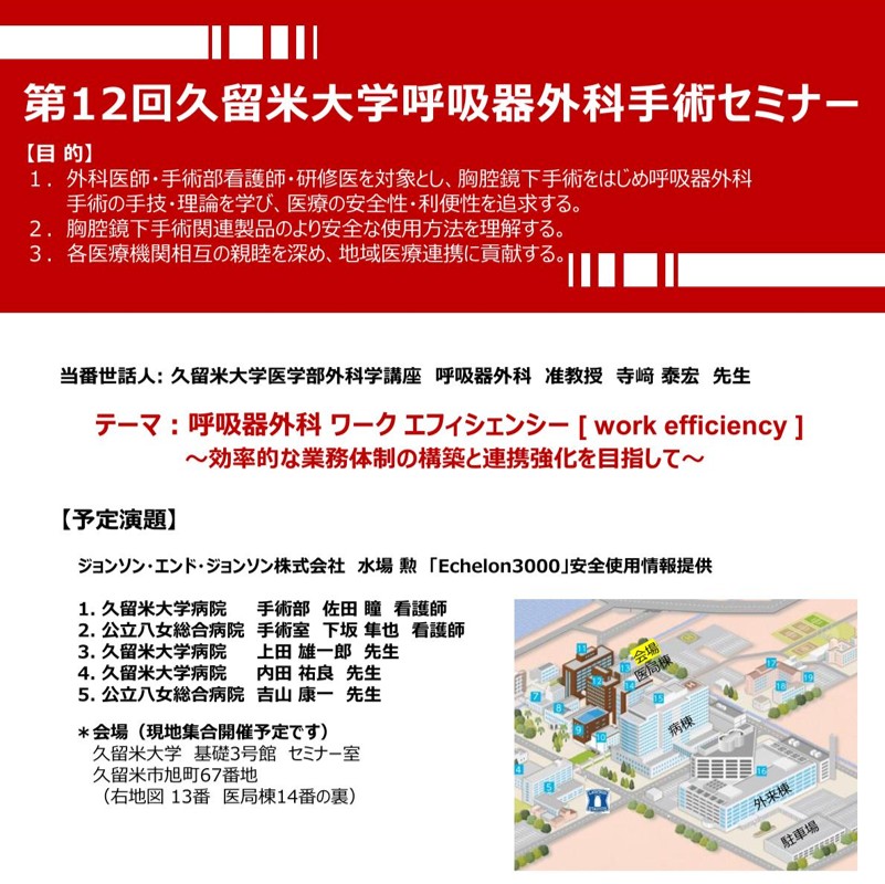 2025年10月11日、Johnson & Johnson Medtech様のご支援のもと、「第12回久留米大学呼吸器外科手術セミナー」を開催しました。