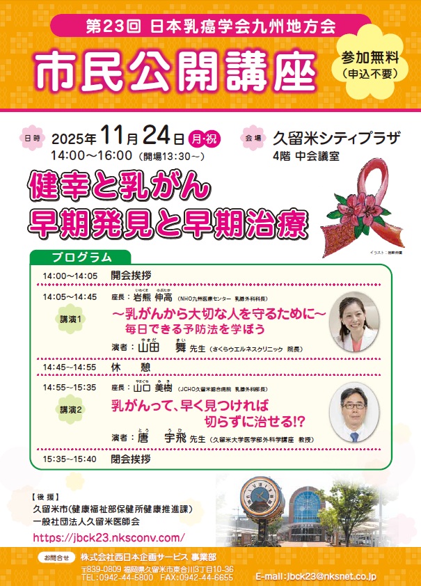 市民公開講座「健幸と乳がん早期発見と早期治療」が開催されます