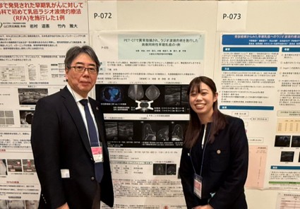 唐先生は「AIと乳がん検診」で座長をされ、今話題のAIを駆使した発表がなされていました。当科からはポスターセッションで「PET-CT で異常指摘され、ラジオ波焼灼術を施行した両側同時性早期乳癌の 1 例」を発表しました。遺伝学的背景からみた検診等、大変勉強になりました。(乳腺・内分泌外科 杉原利枝)