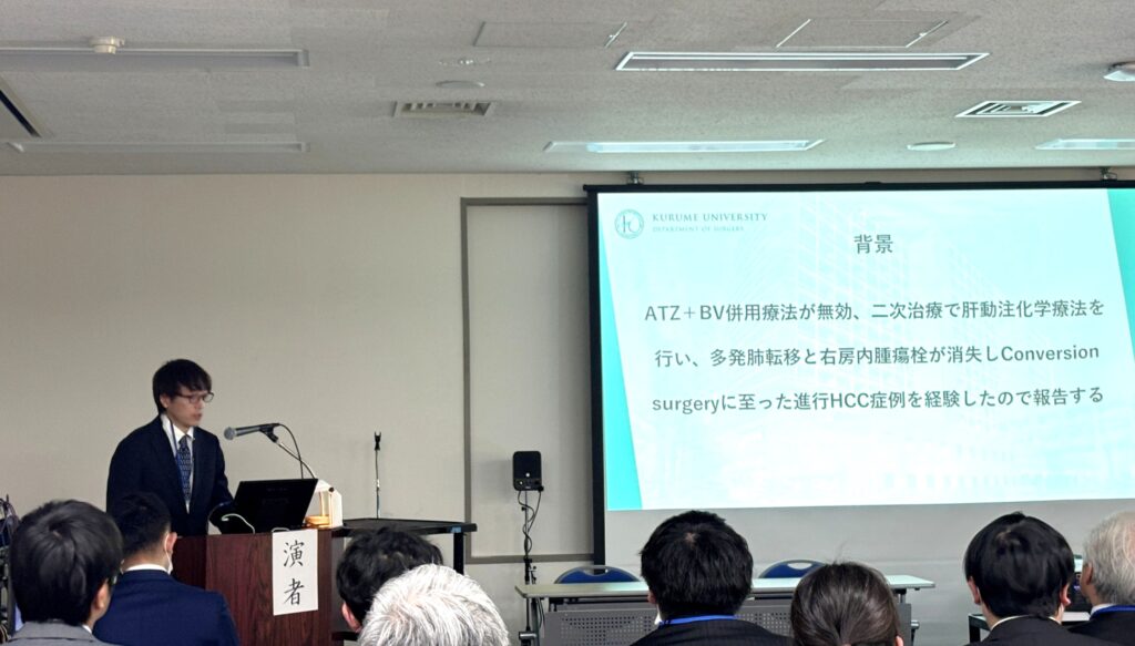本学術集会への参加を通じて、進行肝細胞癌に対する集学的治療や低侵襲手術の現状と課題について理解を深めるとともに、他施設との活発な意見交換を行う貴重な機会となりました。今後も肝臓外科診療のさらなる質の向上を目指し、臨床・研究の両面から取り組んでまいります。(肝胆膵外科 福冨章悟)
